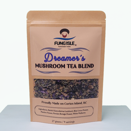 Introducing Fung’Isle’s Breathe Easy Mushroom Tea Blend, a soothing infusion designed to offer a calming experience. Enriched with invigorating cordyceps, this blend also features a blend of mullein leaf & flower, hyssop, blue mallow flower, lungwort lichen, licorice root, & marshmallow root. Crafted with care, it offers a delightful taste while embracing the essence of nature. Enjoy a moment of relaxation & be mindful of your breath.