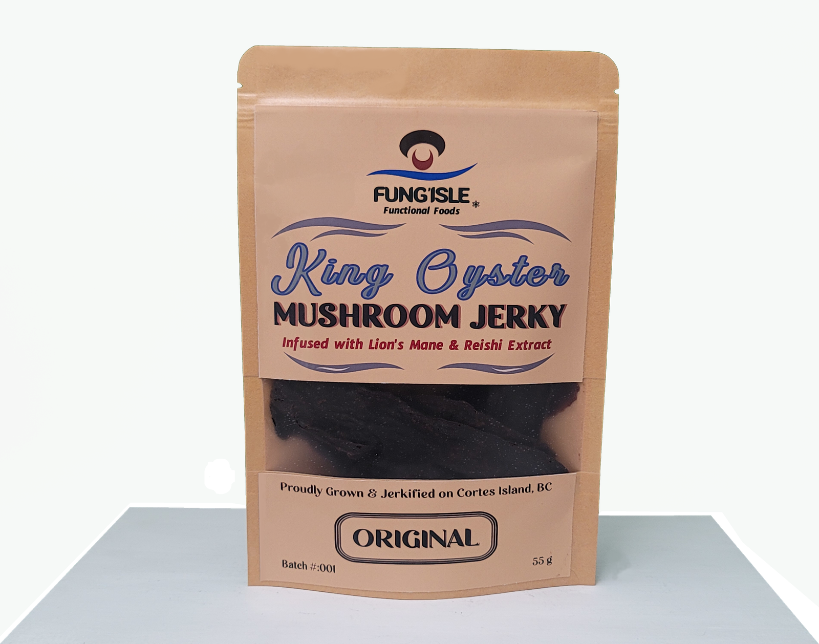 Ingredients: King Oyster Mushrooms (Pleurotus Eryngii), Lion's Mane Mushrooms (Hericium Erinaceus), Coconut Aminos (coconut sap, sea salt), Avocado Oil, Sugars (coconut sugar), Liquid Smoke, Apple Cider Vinegar, Paprika, Onion Powder, Garlic Powder, Sea Salt, Reishi Mushrooms (Ganoderma Lucidum), Black Pepper.